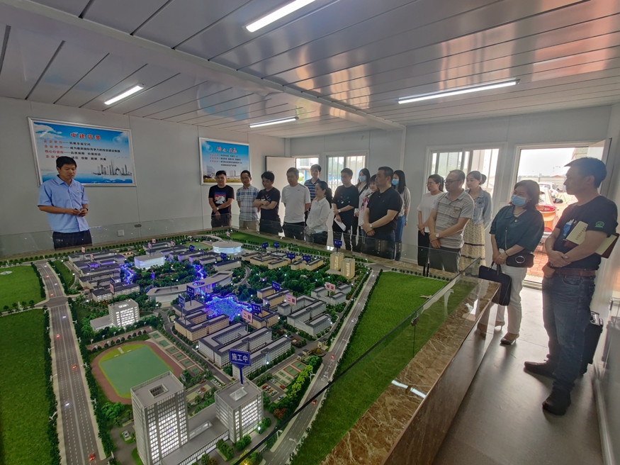 活動(dòng)前,建設(shè)公司一行在中建七局湖北工程職院新校區(qū)項(xiàng)目黨支部書記李曉龍的帶領(lǐng)下觀摩了項(xiàng)目沙盤室,詳細(xì)了解了湖北工程職院新校區(qū)項(xiàng)目進(jìn)展情況。