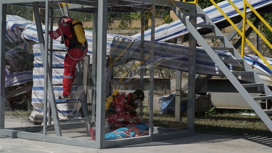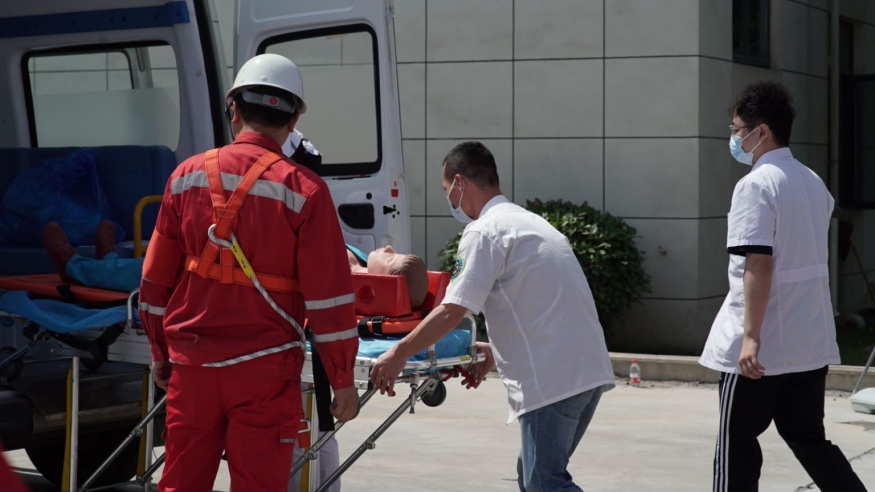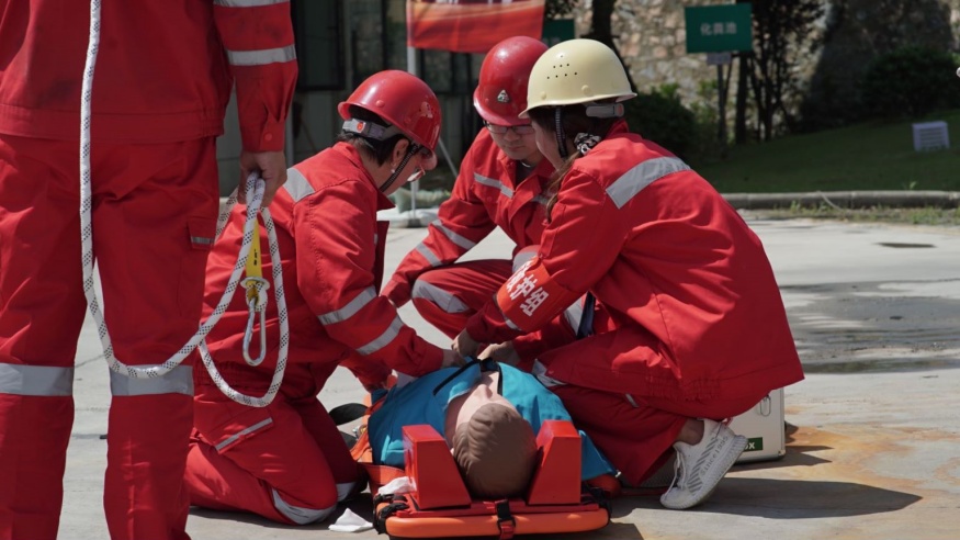 啟動儀式后,黃石市經(jīng)開投路面材料公司開展應急演練活動演練以模擬有限空間作業(yè)環(huán)境下人員缺氧窒息暈倒為背景。事故發(fā)生后,安全保衛(wèi)組、事故救援組、醫(yī)療救護組、后勤保障組等各應急小組迅速趕赴現(xiàn)場,采取有效措施進行事故應急救援。演練全程用時僅15分鐘,演練過程緊張有序,程序規(guī)范、場景真實、反應快速、效果良好。應急演練活動進一步提升了建工集團安全員處置突發(fā)事件的水平和應急處置能力,為完善突發(fā)事件應急預案提供了寶貴的實踐經(jīng)驗。
